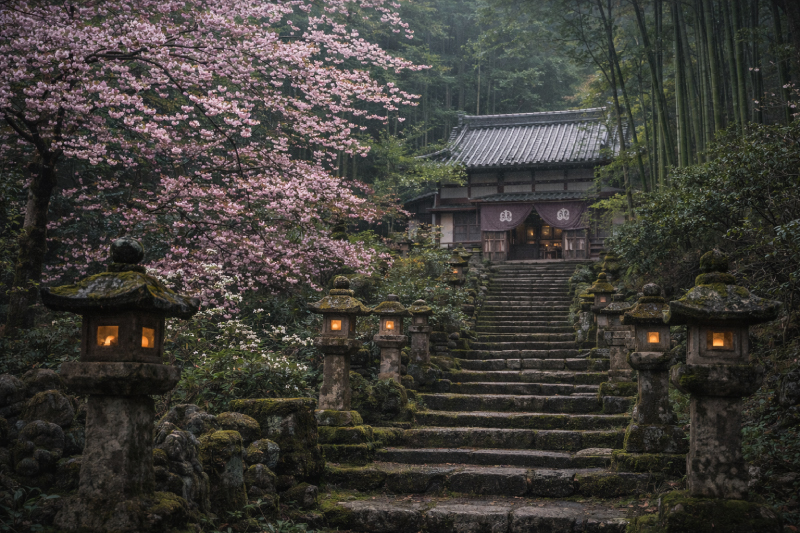 商用の客には大もみじの影の、くすんだ灯籠など気の付く人は稀だった。気がついたところで、庭に灯篭の一つや二つは当たり前でよく見もしない。